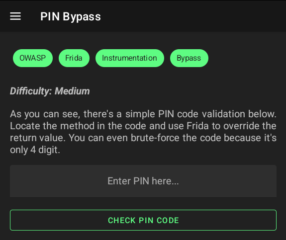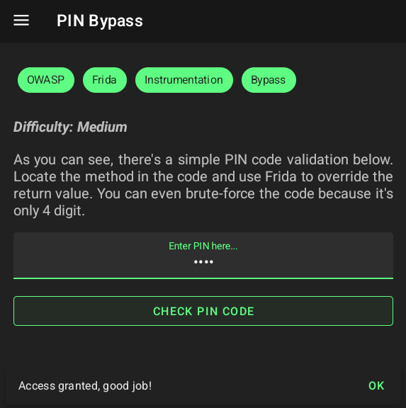 const PinBypassFragment = Java.use('infosecadventures.allsafe.challenges.PinBypass');