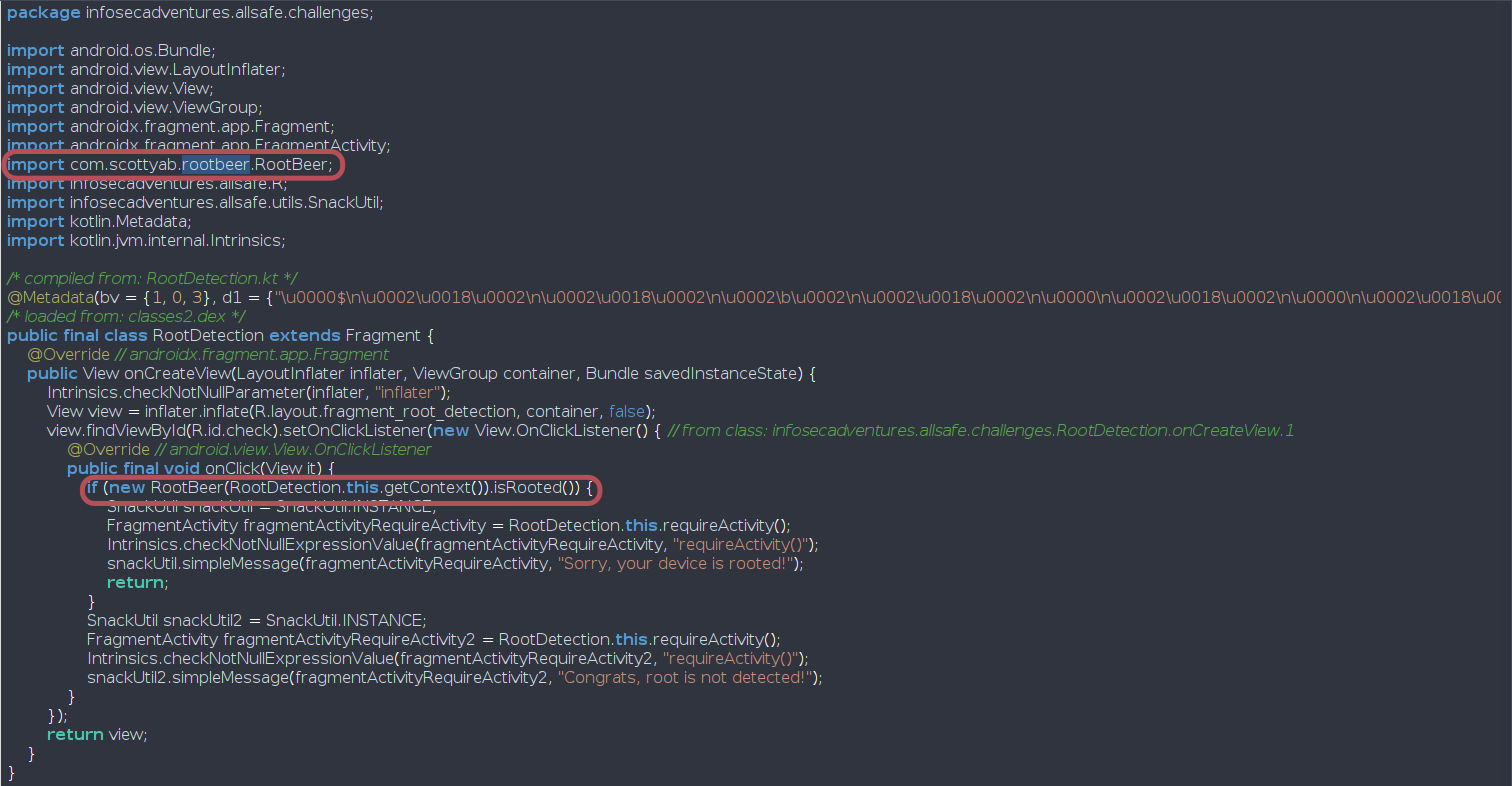 In this challenge we should bypass the root detection, but firstly let’s inspect the static code.