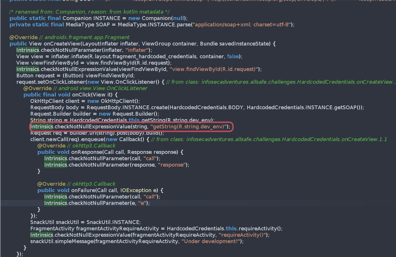 Also there is a point to a variable named dev_env in strings.xml so let’s check what can we reach.